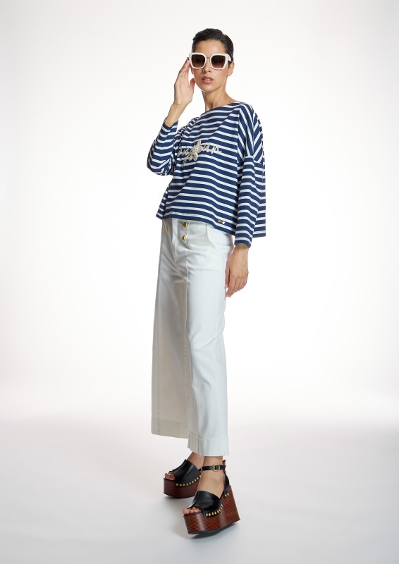 CAMISETA RAYAS Y FLORES MANGA TRES CUARTOS